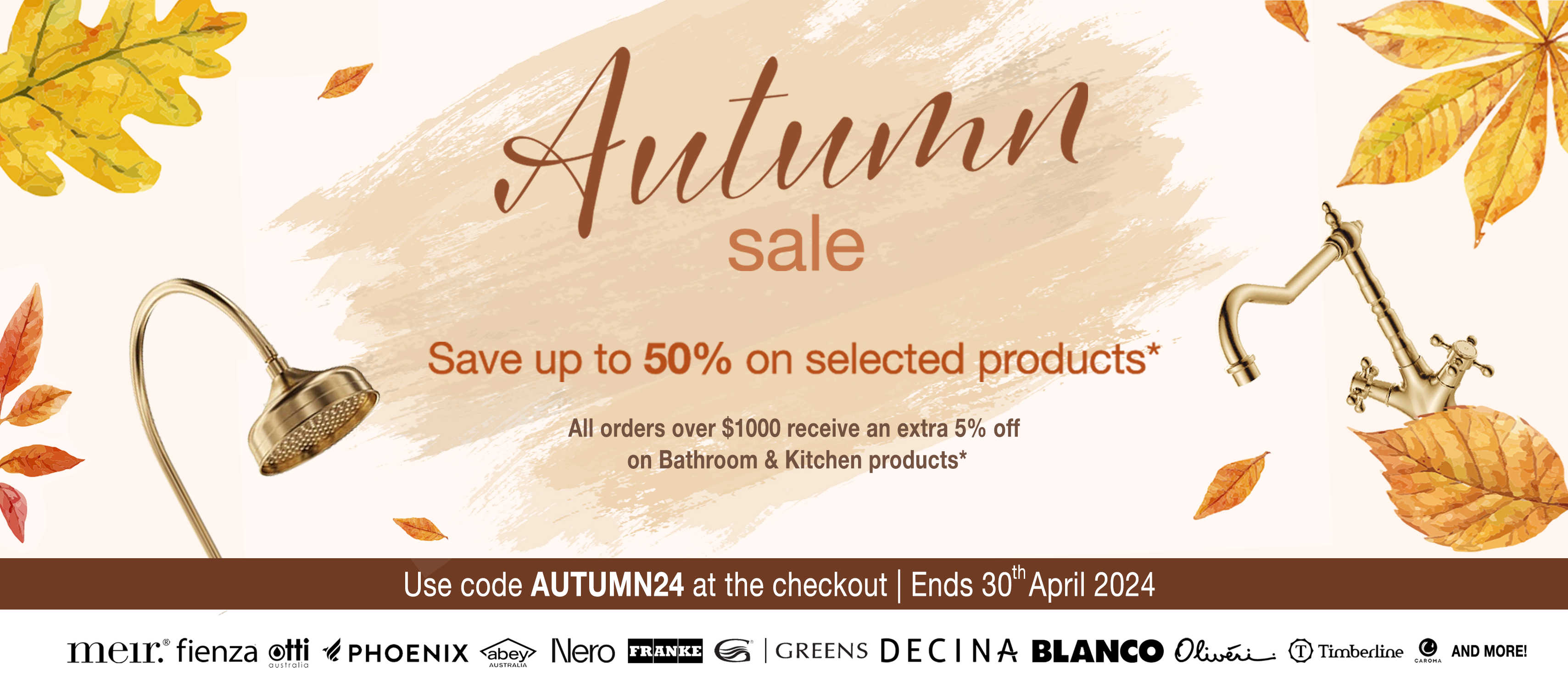 Use code AUTUMN24 to receive an extra 5% off all orders over $1000 for Bathroom & Kitchen products. Ends April 30th. Online orders only*