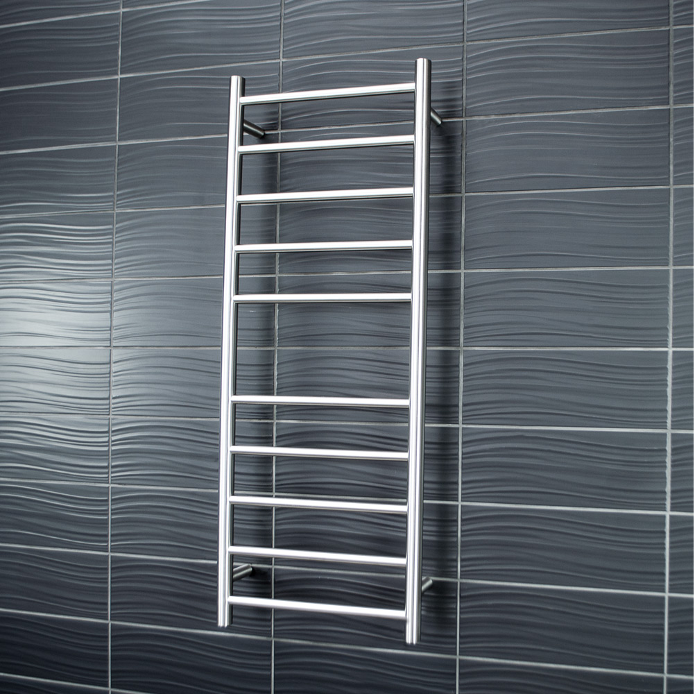 Radiant Low Voltage Brushed Satin 430 x 1100mm Round Heated Towel Rail (Left Wiring) 12V-BRU-RTR430LEFT