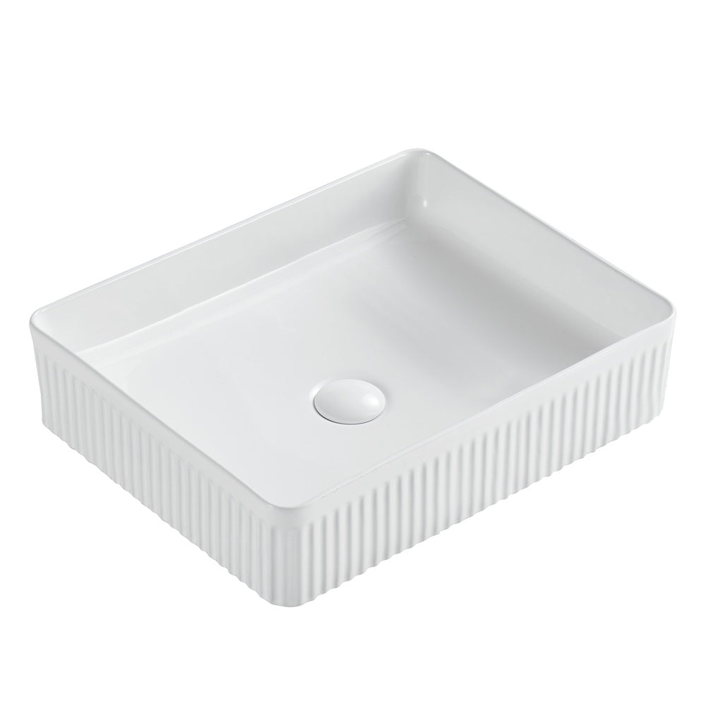BOOK CONSULTATIONSeima Cleo 501 Fluted Rectangle Above Counter Basin 500x360mm (No taphole) Matte White 192625
