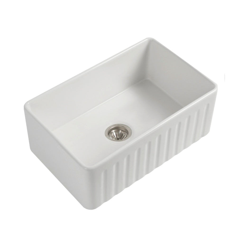 Seima Cleo 760 Fluted/Flat Ceramic Apron Front Sink 1 Bowl 760x459mm Gloss White 192756