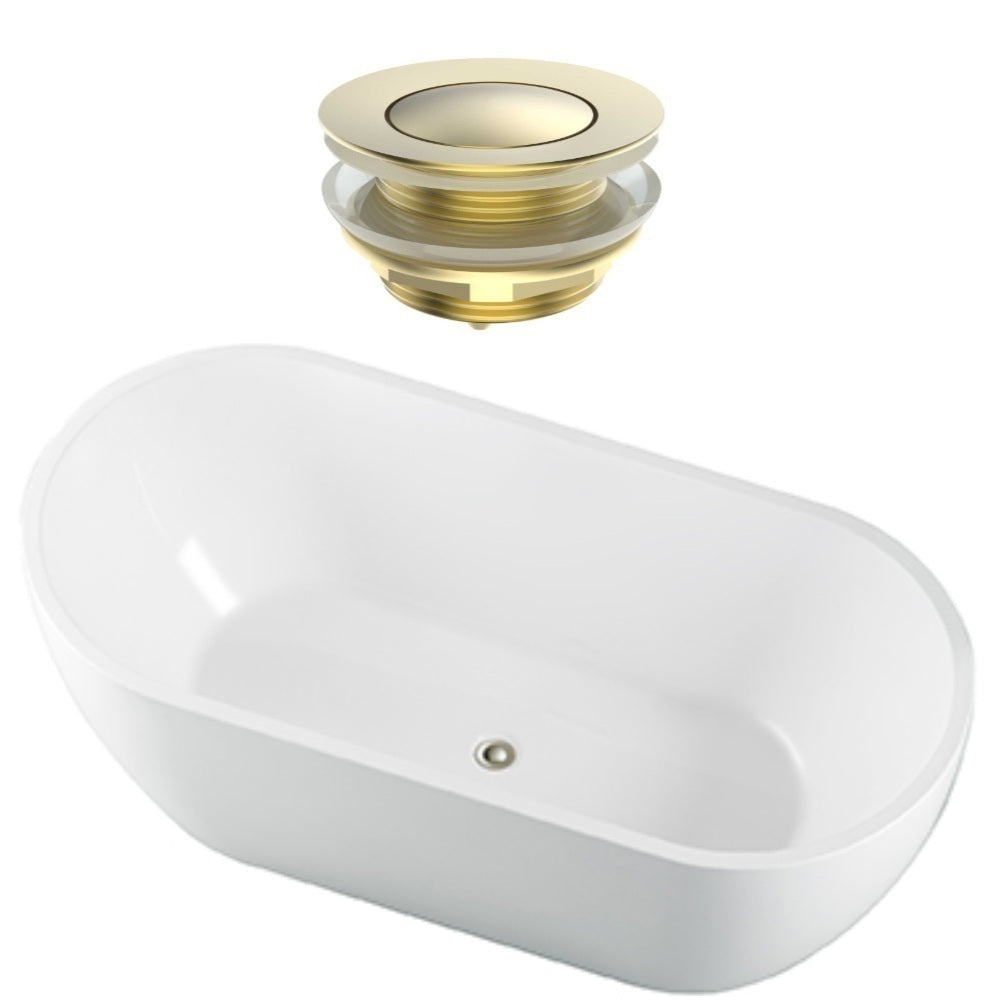 Seima Arko 120 Freestanding Bath 1700mm Gloss White + Flexiwaste Overflow Kit & Pop-Out Waste Brushed Gold 192824