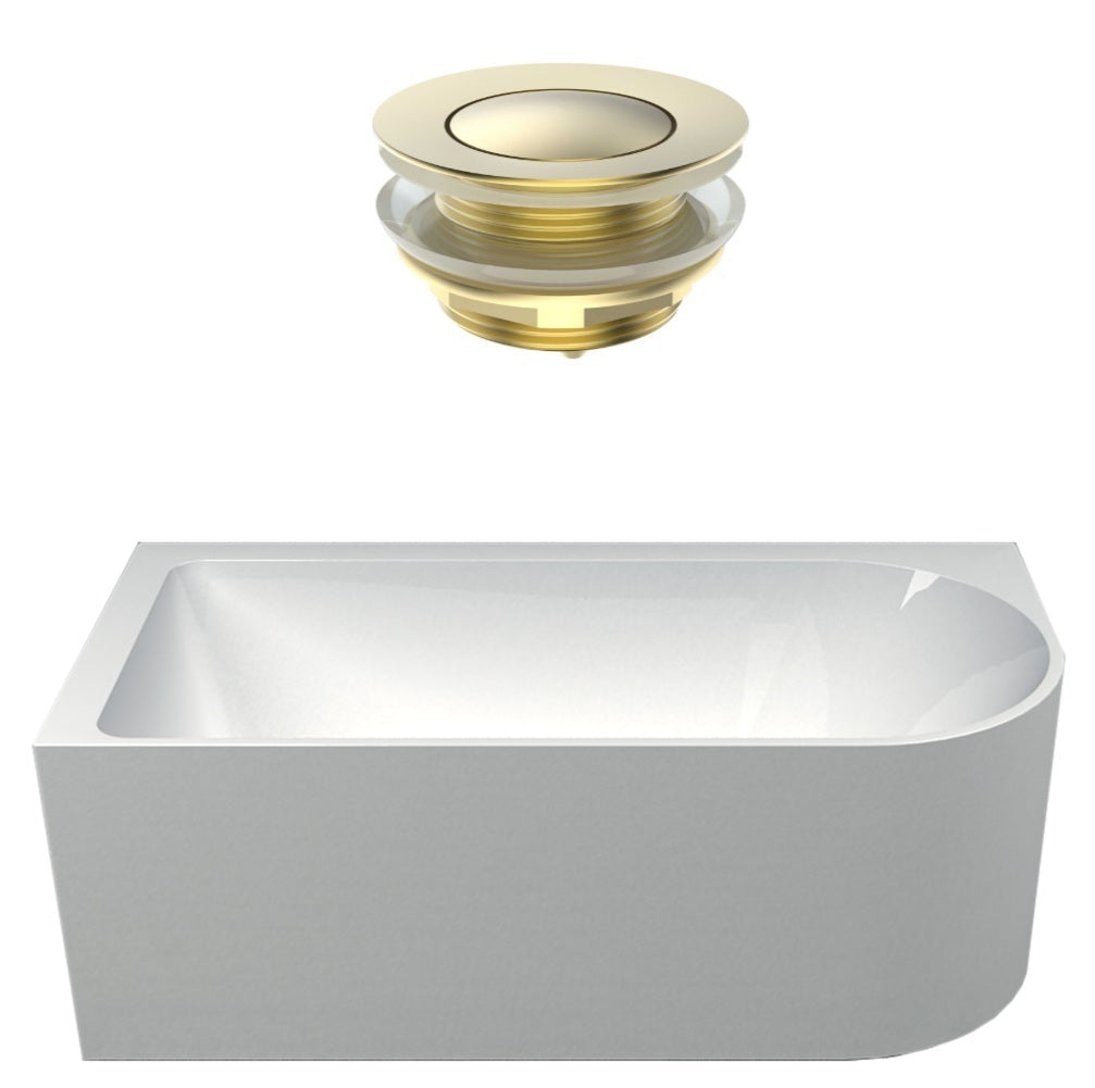 BOOK CONSULTATIONSeima Plati 110 Left Corner Freestanding Bath 1500mm Gloss White + Flexiwaste Overflow Kit & Pop-Out Waste Brushed Gold 192845