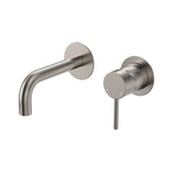 Fienza Kaya Basin/Bath Wall Mixer Set Round Plates 130mm Outlet Lead Free Brushed Nickel 228104BN-130-LF