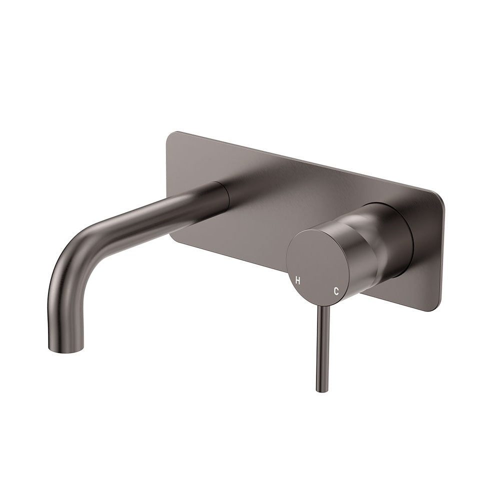 Fienza Kaya Basin/Bath Wall Mixer Set Rectangular Plate 130mm Outlet Lead Free Gunmetal 228106GM-130-LF