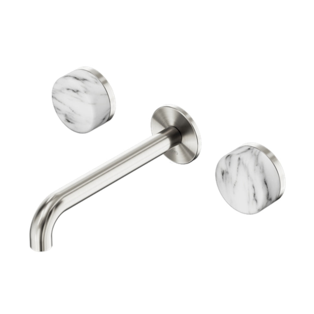 BOOK CONSULTATIONNero Serenity Wall Basin Set 220mm Spout w/ Arabescato Corchia Handle Brushed Nickel 24D050BN