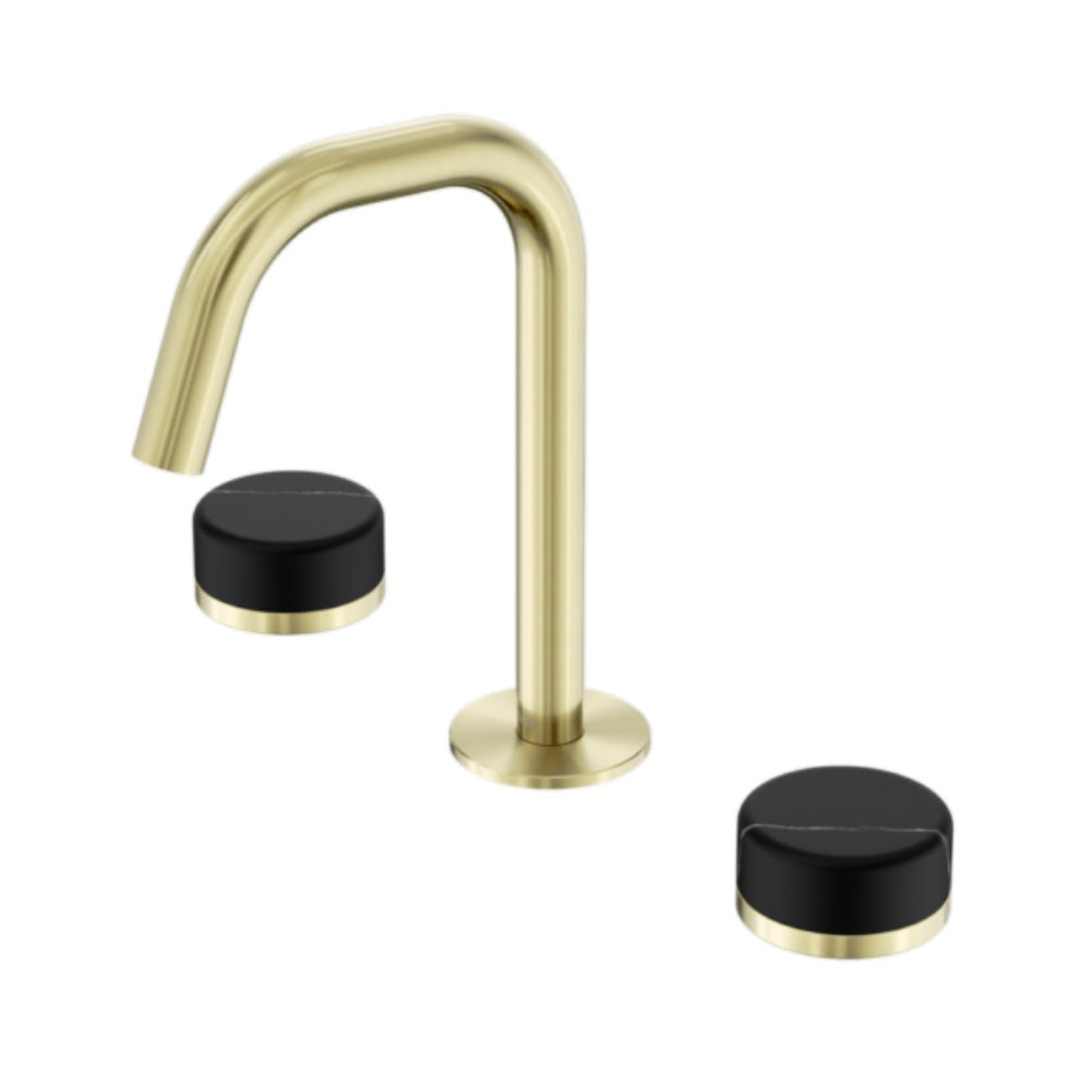 Nero Serenity Basin Set Edge Spout w/ Marquina Black Handle Brushed Gold 24D119BG