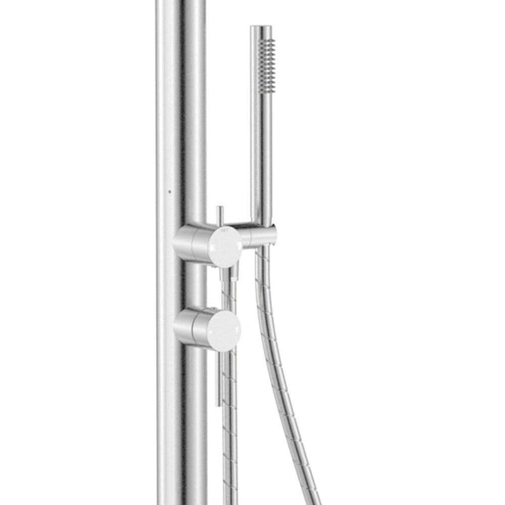 BOOK CONSULTATIONFienza Kaya Floor Mounted Outdoor Twin Shower Brushed Stainless Steel 455190