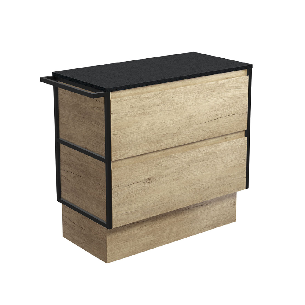 BOOK CONSULTATIONFienza Amato Satin Black 900 Wall Hung Cabinet 970x460x850mm (1 Frame & 1 Towel Rail) Scandi Oak 90BSFTK