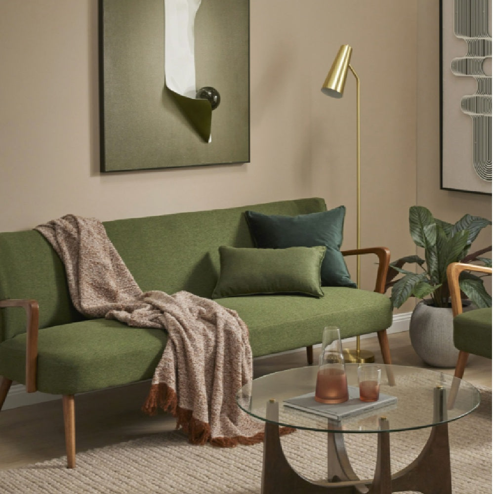 Made from pine and rubber wood with plush green seating, it pairs perfectly with all kinds of interiors and seats multiple people with no fuss.