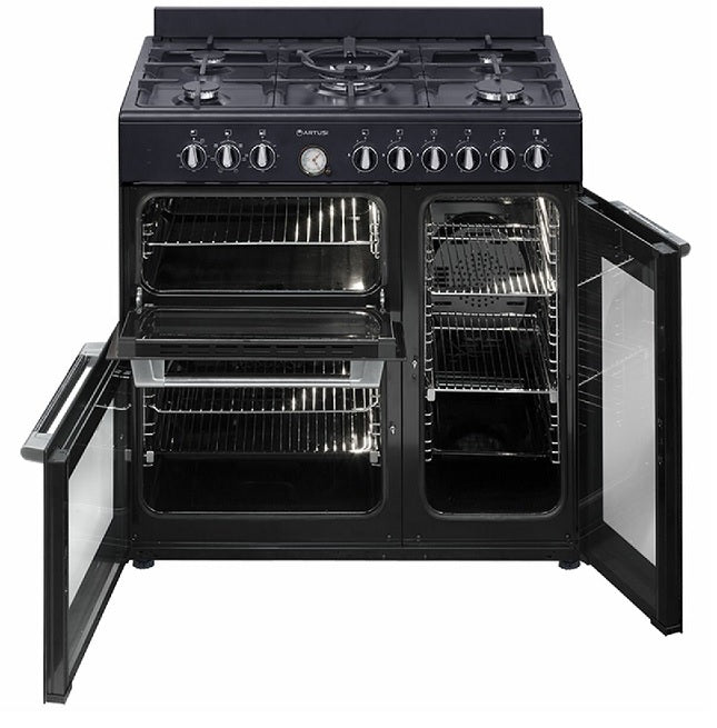 Artusi Cooker 90cm 3 Door Oven with Gas Cooktop Matt Black AFGR935B