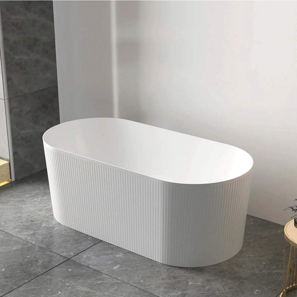Otti Attica Noosa Freestanding Bath 1500mm w/ Overflow Gloss White ANBT-1500-OF