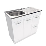 Fienza Citi Sink & Unicab Vanity On Kick Solid Doors (Right Hand Drawers) (No taphole) 900mm Gloss White CIT90NKWR-0