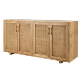 This Jordan Buffet Unit is made from ash wood with a veneer finish, it features cupboard doors with rattan covers, iron handles and internal shelves.