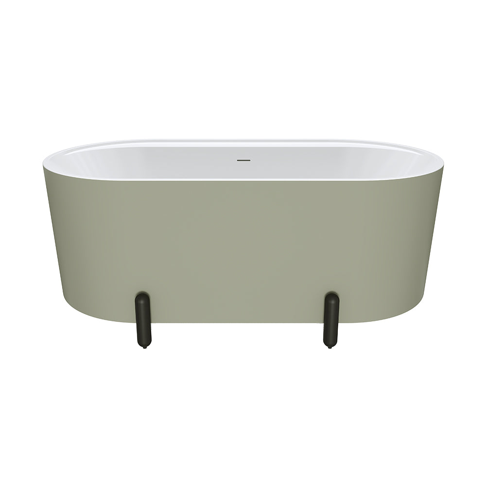 Fienza Aluca Freestanding Bath 1500mm w/ Overflow Matte Olive w/ Matte Black Legs FR88-1500G-B-OF