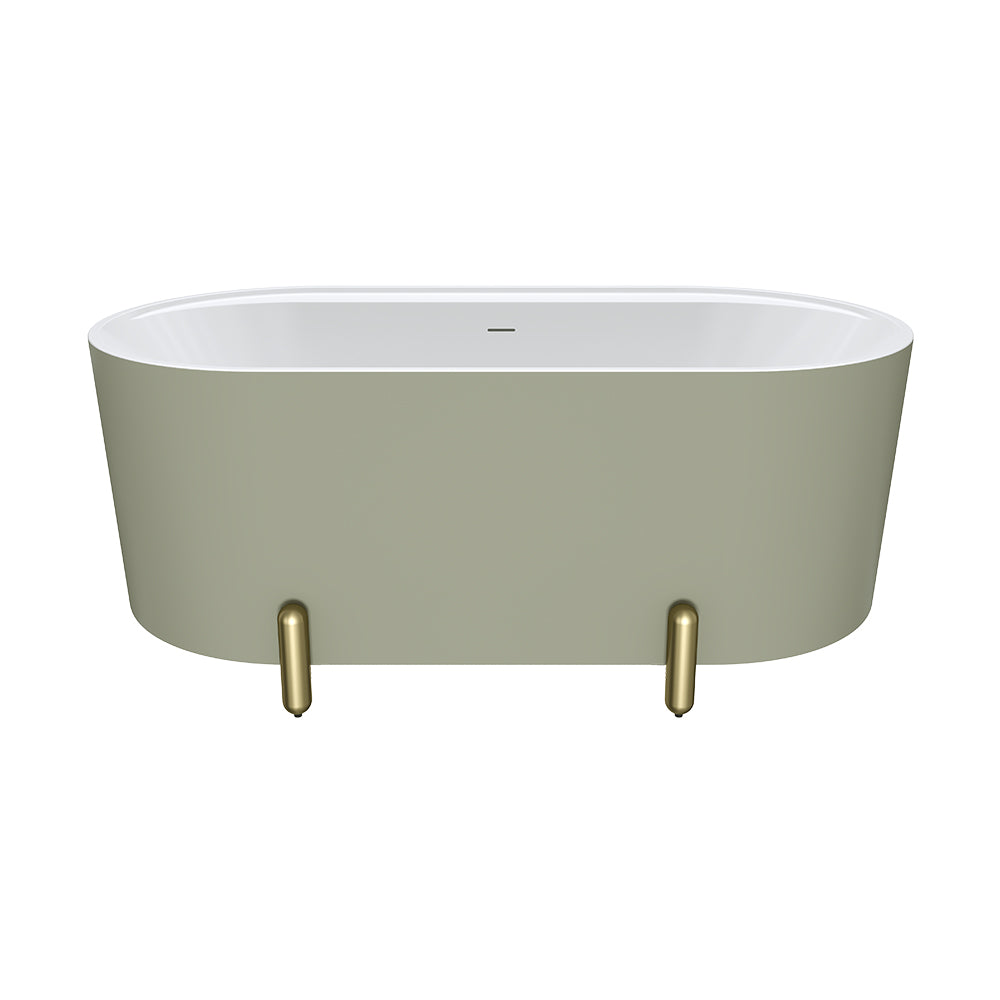 Fienza Aluca Freestanding Bath 1500mm w/ Overflow Matte Olive w/ Urban Brass Legs FR88-1500G-UB-OF