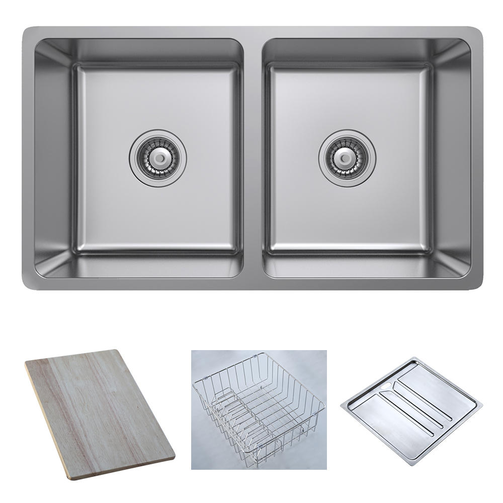 Argent Verve Sink Double Bowl 770x440mm (No Tap Hole) (Inc. Food Board, Dish Rack & Drainer Tray) Stainless Steel KS1077230FDTB