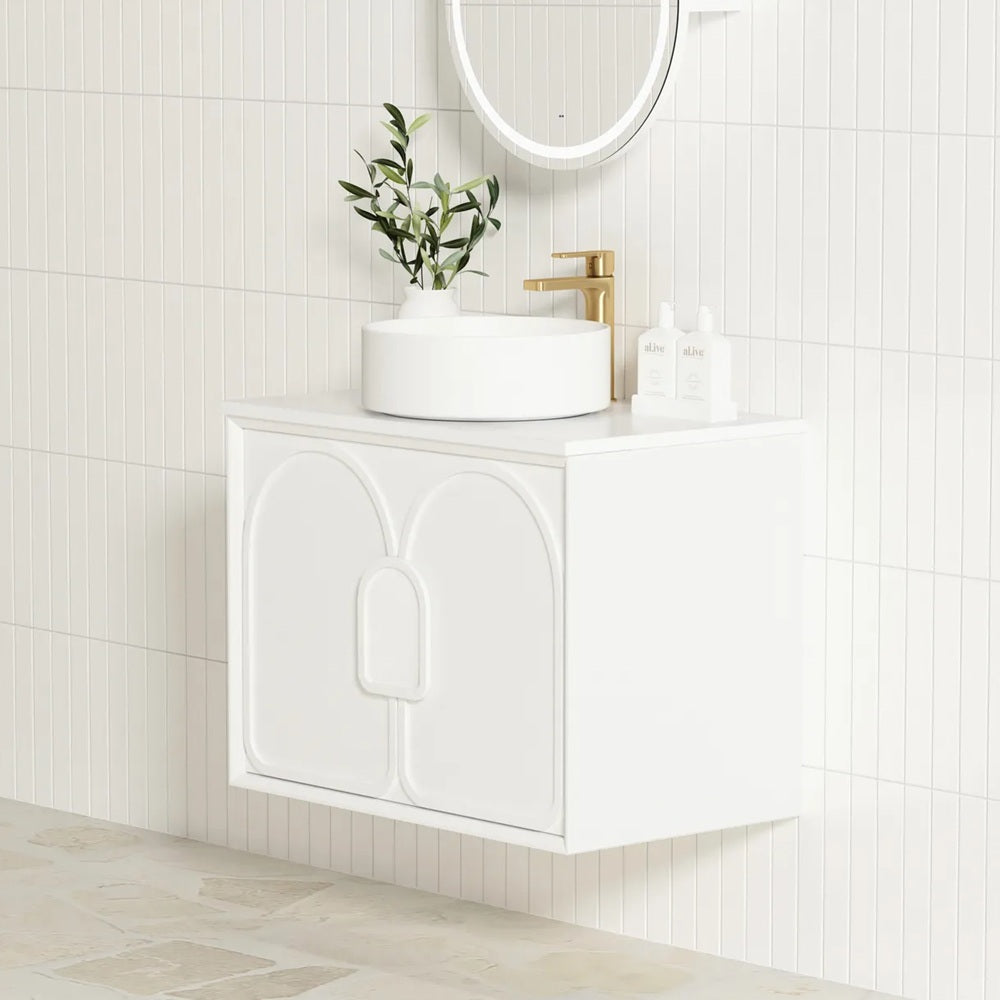 Otti Laguna Mk II Wall Hung Vanity 750mm Matte White w/ Matte White Top LGM750WSTUD-MW