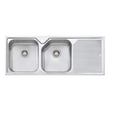 Oliveri Nu-Petite 1250mm Double Bowl Sink With Right Hand Drainer Stainless Steel NP671