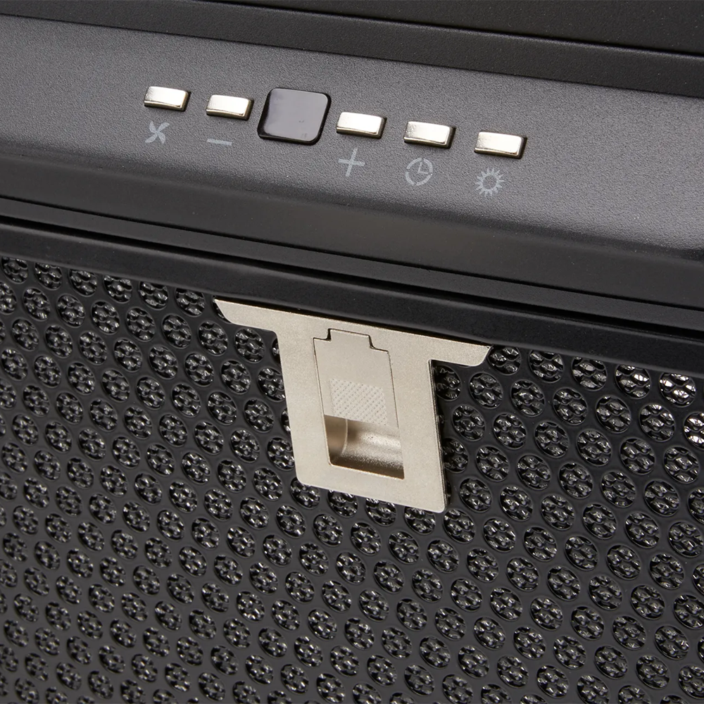 Soft-touch controls operate the 5 speed settings and LED lighting, while dishwasher-safe mesh filters offer easy maintenance. (Baffles are also available as an option.)